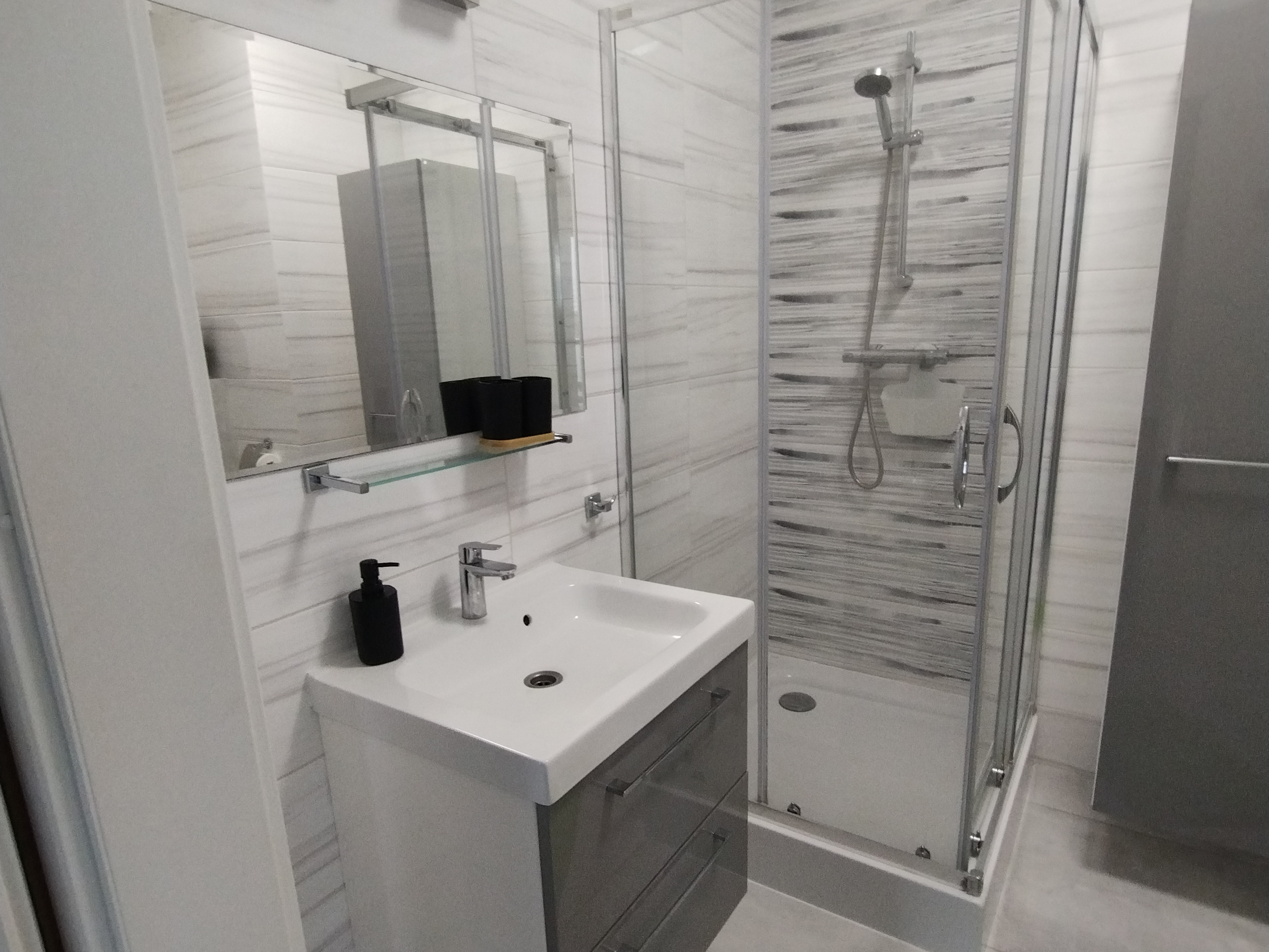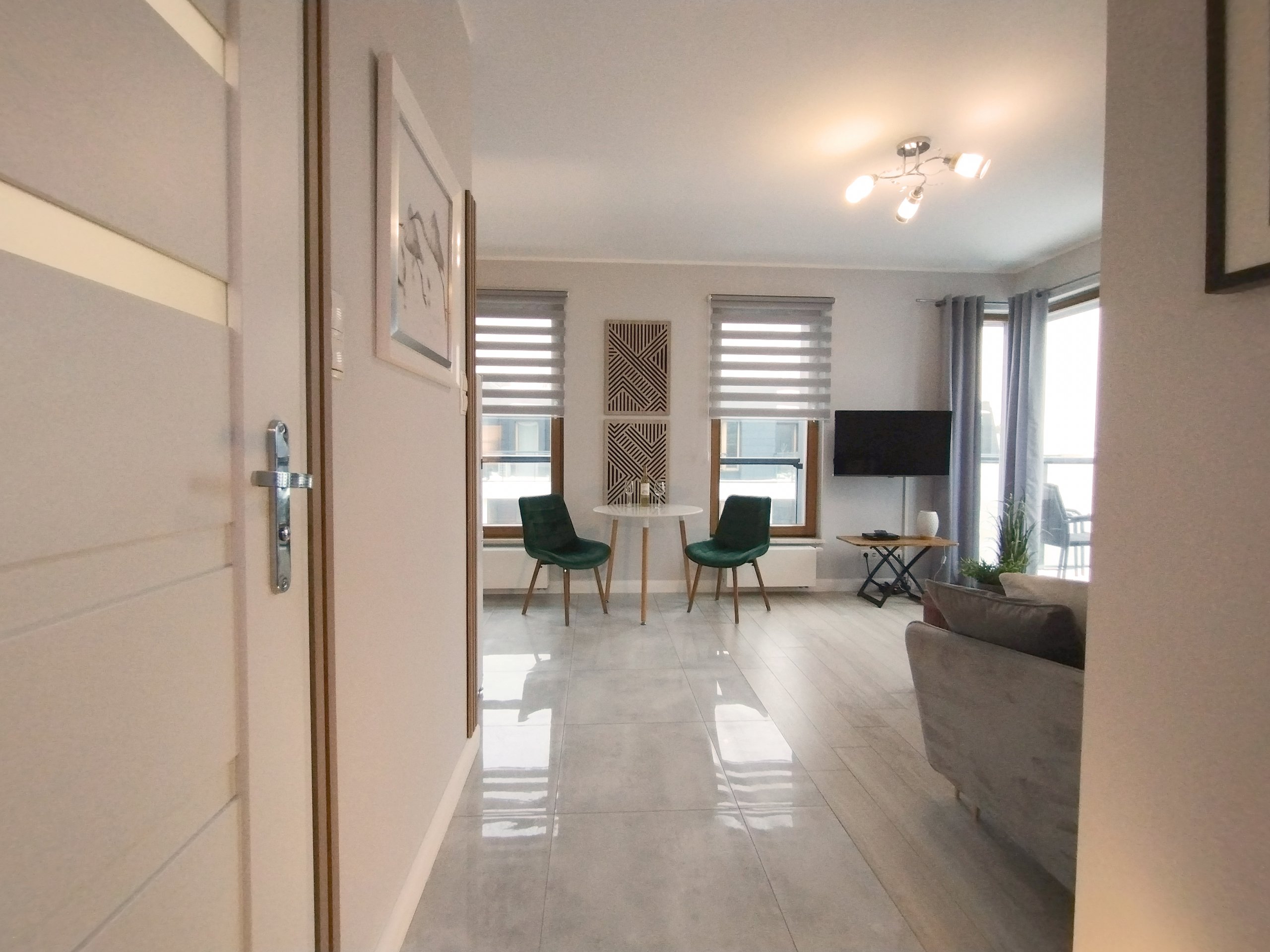 In der direkten Umgebung finden Sie zahlreiche Einkaufsmöglichkeiten, stilvolle Cafés sowie ausgezeichnete Restaurants mit regionaler und internationaler Küche. Öffentliche Verkehrsmittel, darunter eine Bushaltestelle und der Bahnhof von Sopot, sind fußläufig erreichbar und ermöglichen eine schnelle und bequeme Anbindung nach Danzig, Gdynia und in die gesamte Dreistadt-Region.